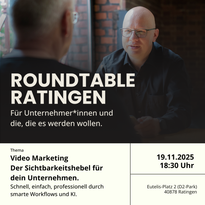 Am 19. November startet der Unternehmer Roundtable Ratingen. Ein neues Austauschformat für Unternehmer*innen und die, die es werden wollen.
